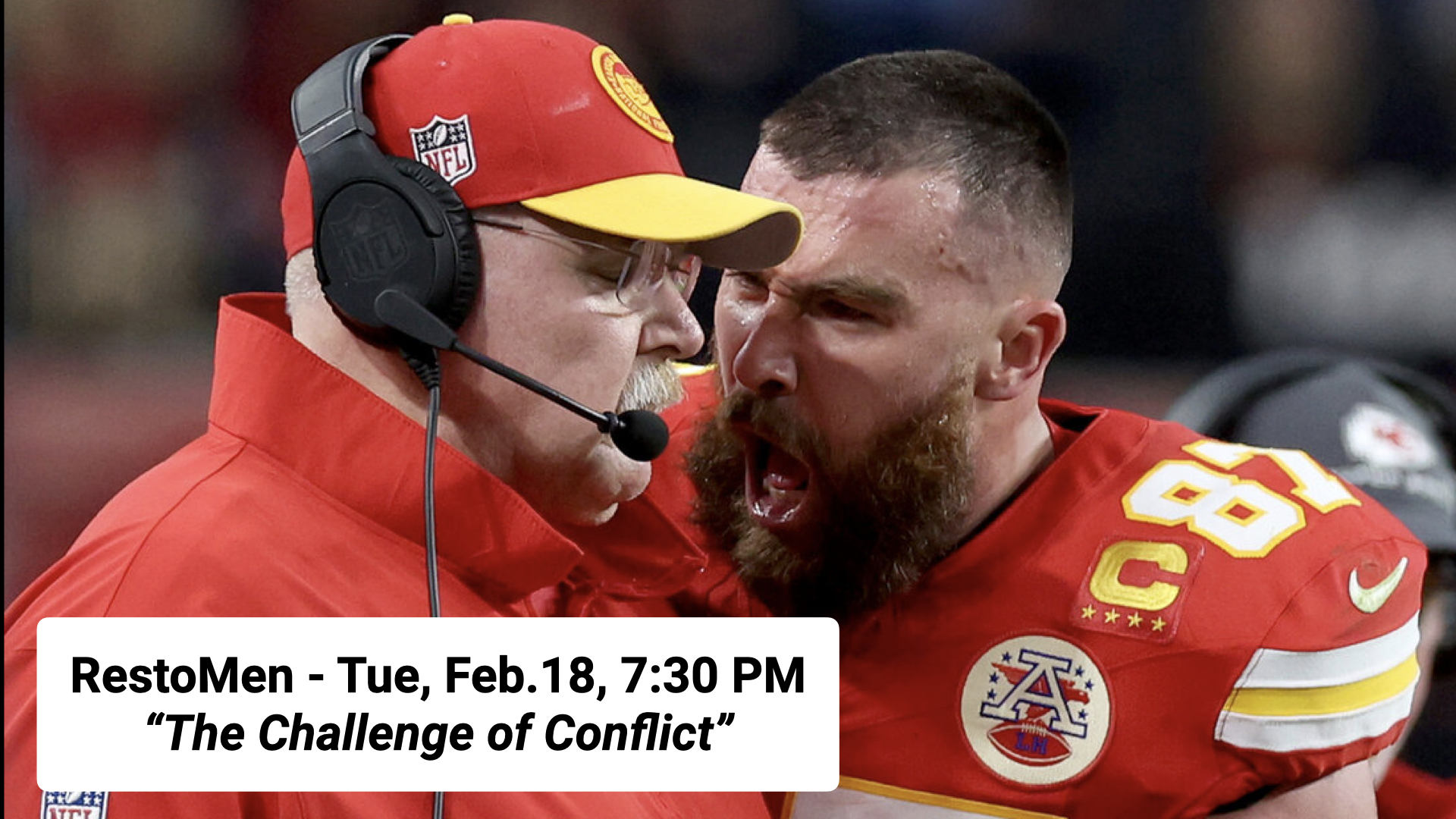 Guys, please join us on Tue PM, February 18 in the Fellowship Hall as we continue our series on the “Challenges Men Face”. This month we will discuss the topic: “The Challenge of Conflict”.